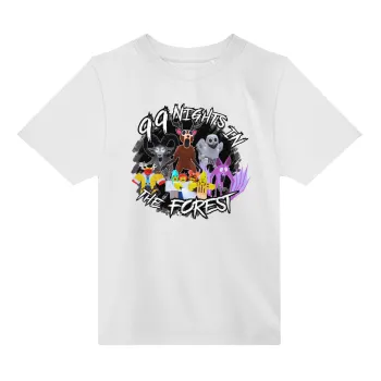 Roblox 99 nights in the forest, Άνετο παιδικό T-Shirt ΛΕΥΚΟ από 100% βαμβάκι, για κάθε μέρα. Vegan & OEKO-TEX πιστοποιημένο.