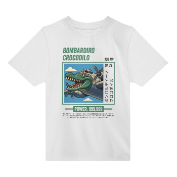 Bombardiro Crocodilo, Άνετο παιδικό T-Shirt ΛΕΥΚΟ από 100% βαμβάκι, για κάθε μέρα. Vegan & OEKO-TEX πιστοποιημένο.