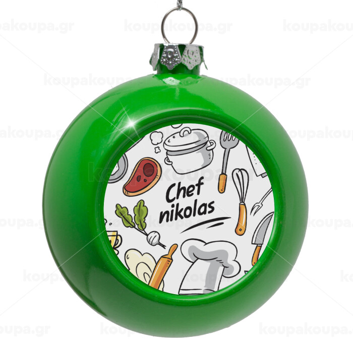 Chef με όνομα, Στολίδι Χριστουγεννιάτικη μπάλα δένδρου Πράσινο 8cm