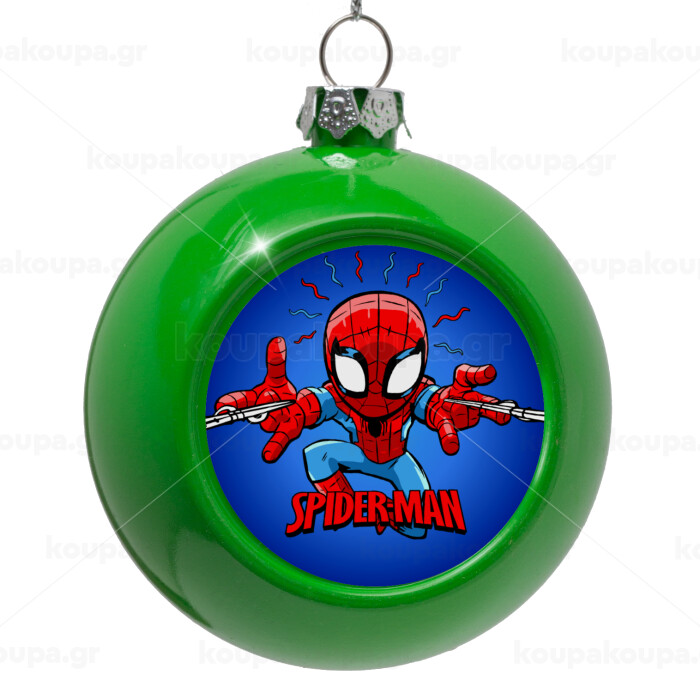Spiderman flying, Στολίδι Χριστουγεννιάτικη μπάλα δένδρου Πράσινο 8cm