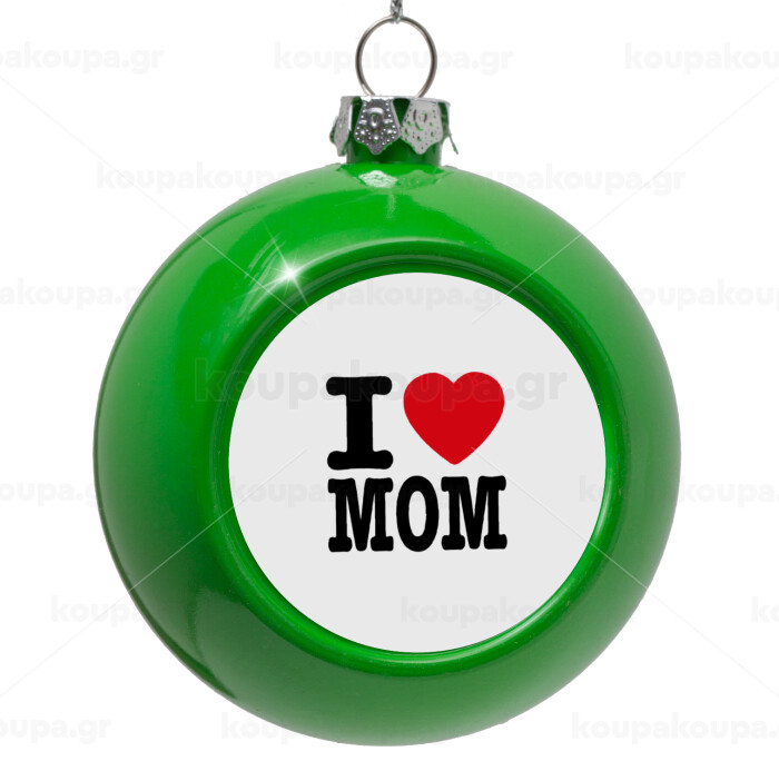 I LOVE MOM, Στολίδι Χριστουγεννιάτικη μπάλα δένδρου Πράσινο 8cm