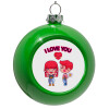 Couple, I love you, Στολίδι Χριστουγεννιάτικη μπάλα δένδρου Πράσινο 8cm