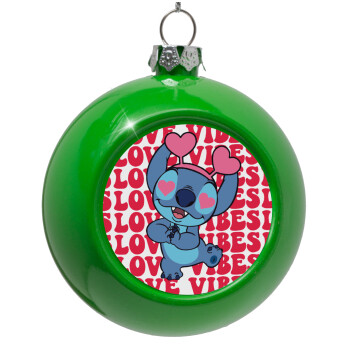Lilo & Stitch Love vibes, Στολίδι Χριστουγεννιάτικη μπάλα δένδρου Πράσινο 8cm