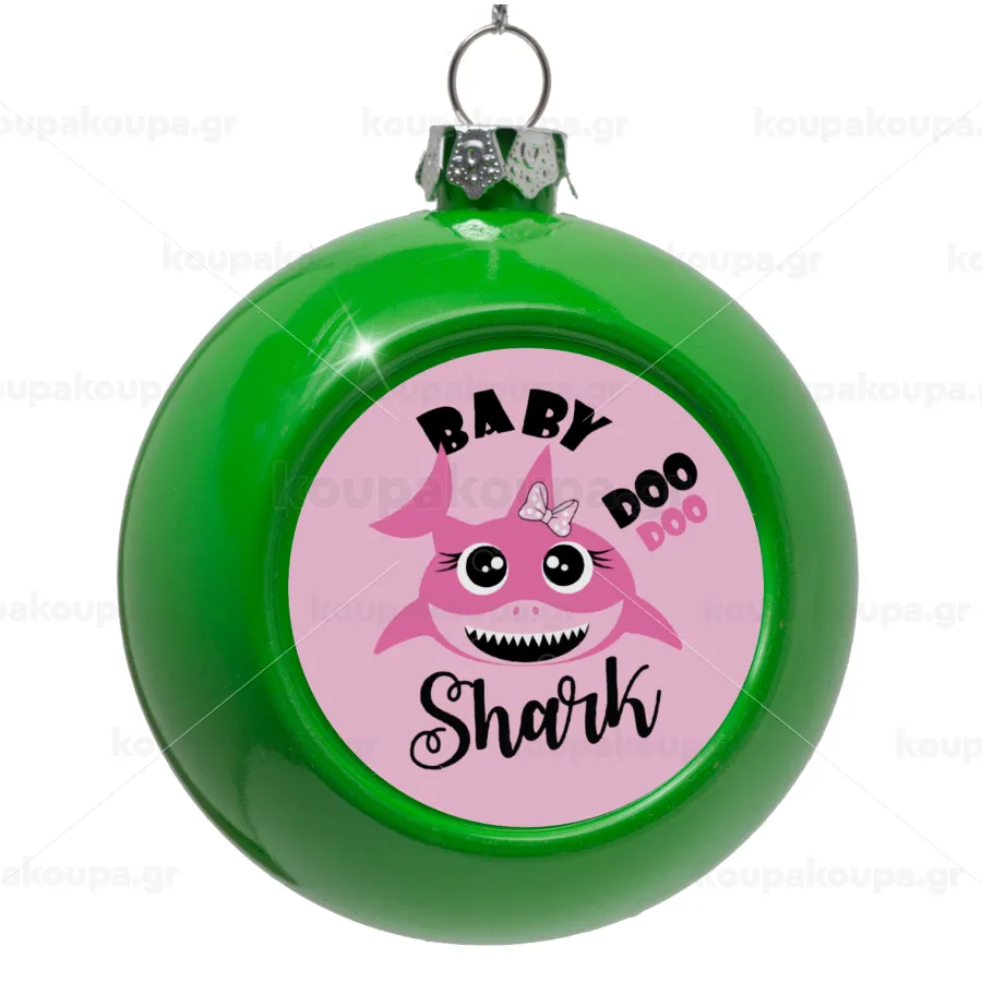 Baby Shark (girl), Στολίδι Χριστουγεννιάτικη μπάλα δένδρου Πράσινο 8cm