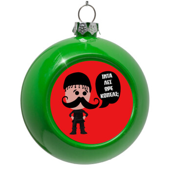 Κρητικός "Ίντα λες ωρέ κοπέλι", Στολίδι Χριστουγεννιάτικη μπάλα δένδρου Πράσινο 8cm