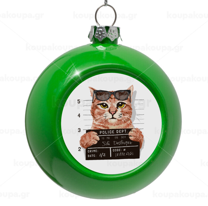 Cool cat, Στολίδι Χριστουγεννιάτικη μπάλα δένδρου Πράσινο 8cm