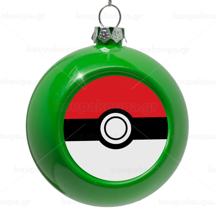 Pokemon ball, Στολίδι Χριστουγεννιάτικη μπάλα δένδρου Πράσινο 8cm