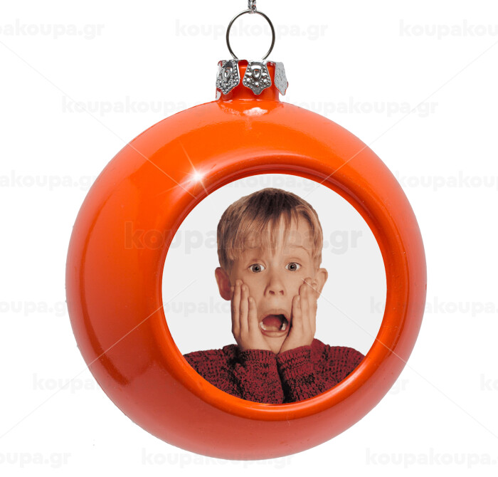 Μόνος στο σπίτι Kevin McCallister Shocked, Στολίδι Χριστουγεννιάτικη μπάλα δένδρου Πορτοκαλί 8cm