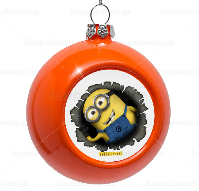 Minions hi, Στολίδι Χριστουγεννιάτικη μπάλα δένδρου Πορτοκαλί 8cm