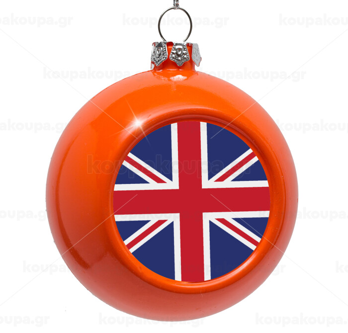Σημαία Αγγλίας UK, Στολίδι Χριστουγεννιάτικη μπάλα δένδρου Πορτοκαλί 8cm