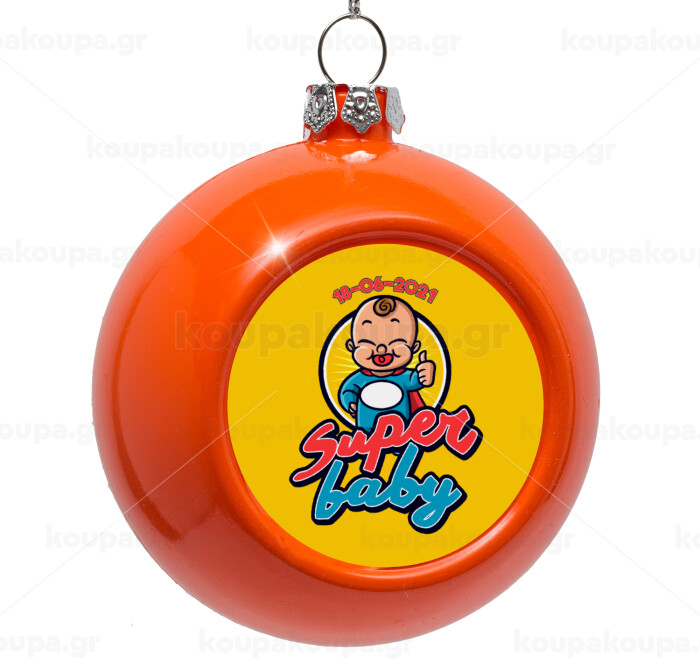 Super baby., Στολίδι Χριστουγεννιάτικη μπάλα δένδρου Πορτοκαλί 8cm