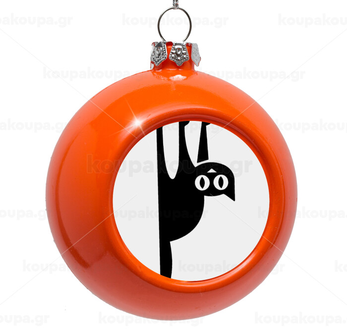 Cat upside down, Στολίδι Χριστουγεννιάτικη μπάλα δένδρου Πορτοκαλί 8cm