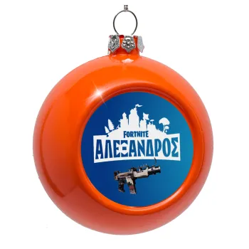 Fortnite with gun με το όνομα σου, Στολίδι Χριστουγεννιάτικη μπάλα δένδρου Πορτοκαλί 8cm