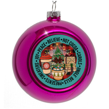 Joy, Peace, Believe, Hot Cocoa, Carols, Στολίδι Χριστουγεννιάτικη μπάλα δένδρου Μωβ 8cm