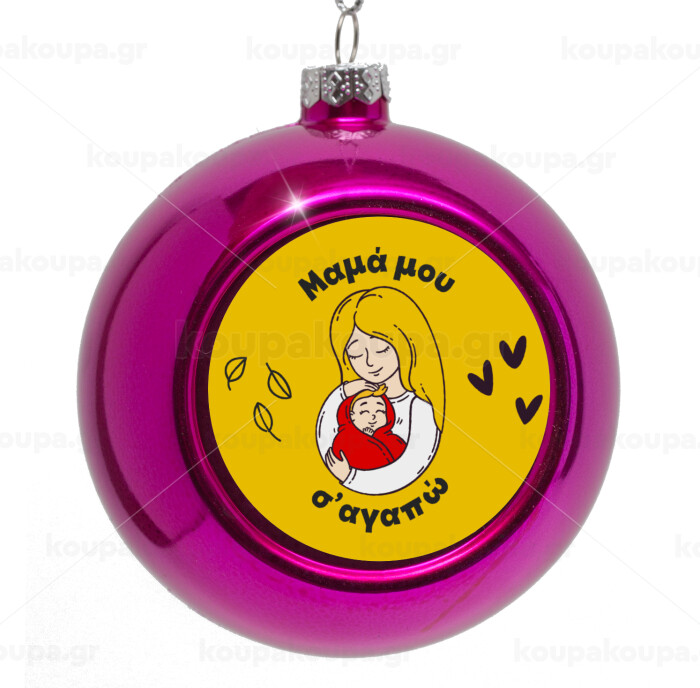 Μανούλα σ'αγαπώ αγκαλιά!, Στολίδι Χριστουγεννιάτικη μπάλα δένδρου Μωβ 8cm