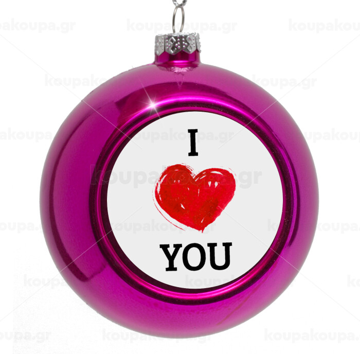 I Love You, Στολίδι Χριστουγεννιάτικη μπάλα δένδρου Μωβ 8cm
