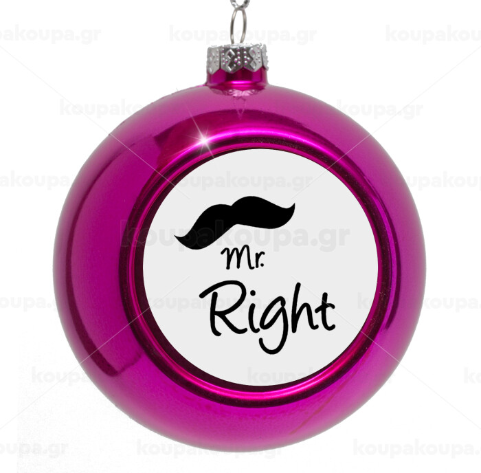 Mr right Mustache, Στολίδι Χριστουγεννιάτικη μπάλα δένδρου Μωβ 8cm