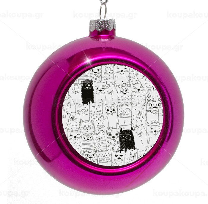 Γάτες γραμμικό σχέδιο, Στολίδι Χριστουγεννιάτικη μπάλα δένδρου Μωβ 8cm