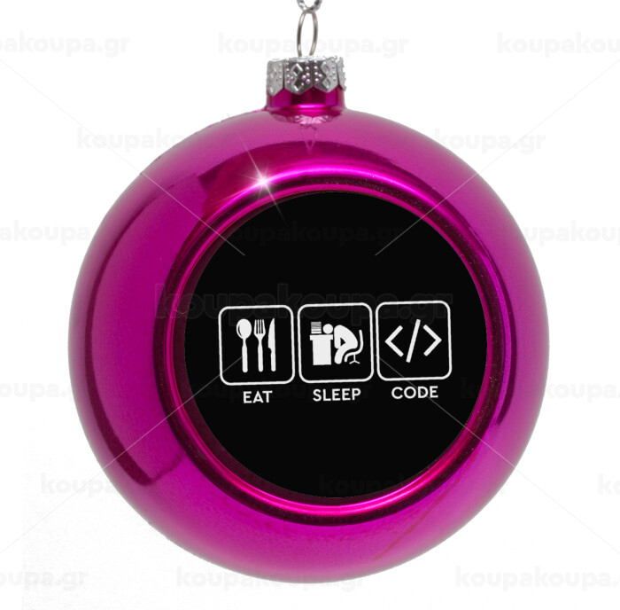 Eat Sleep Code, Στολίδι Χριστουγεννιάτικη μπάλα δένδρου Μωβ 8cm