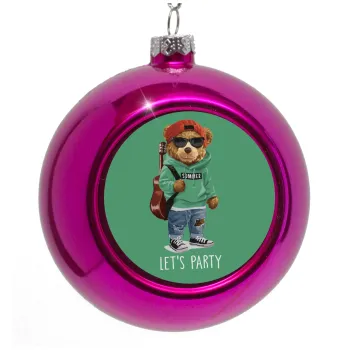 Let's Party Bear, Στολίδι Χριστουγεννιάτικη μπάλα δένδρου Μωβ 8cm