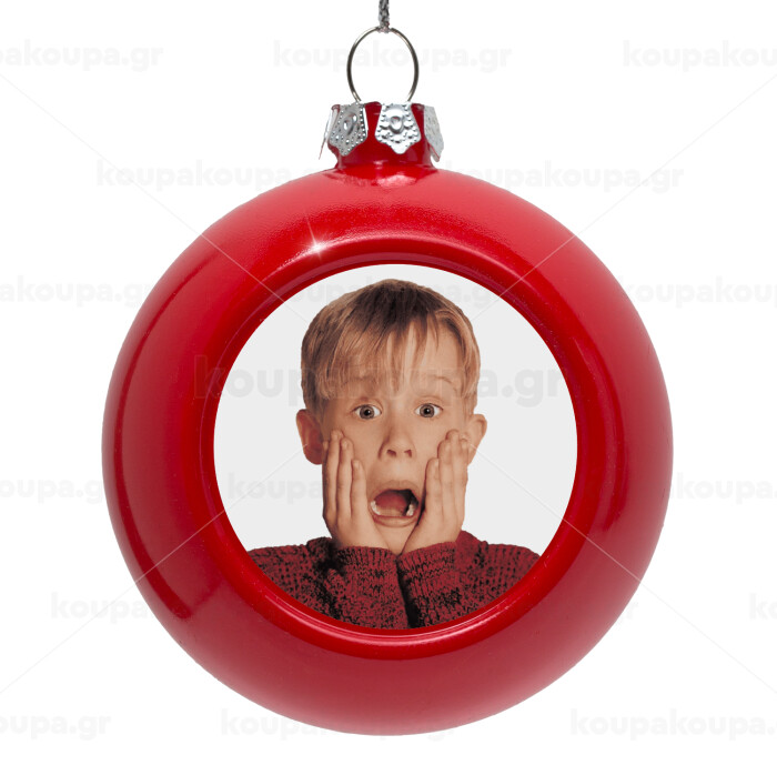 Μόνος στο σπίτι Kevin McCallister Shocked, Στολίδι Χριστουγεννιάτικη μπάλα δένδρου Κόκκινη 8cm