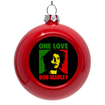 Bob marley, one love, Στολίδι Χριστουγεννιάτικη μπάλα δένδρου Κόκκινη 8cm