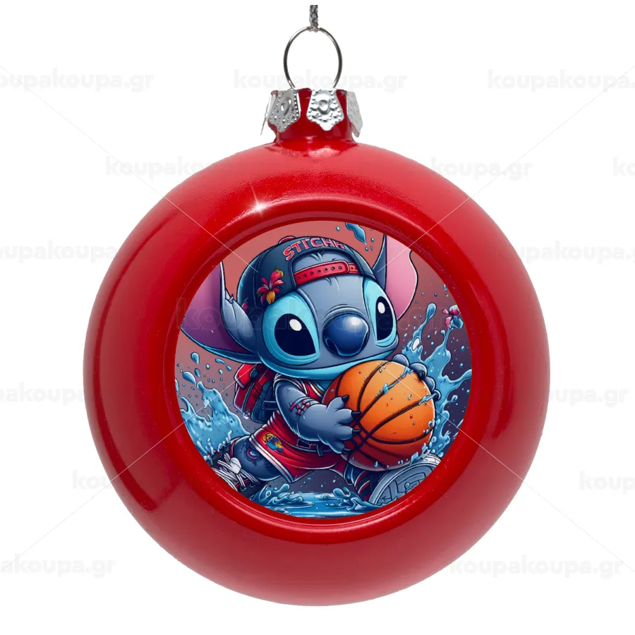 Stitch Basketball, Στολίδι Χριστουγεννιάτικη μπάλα δένδρου Κόκκινη 8cm