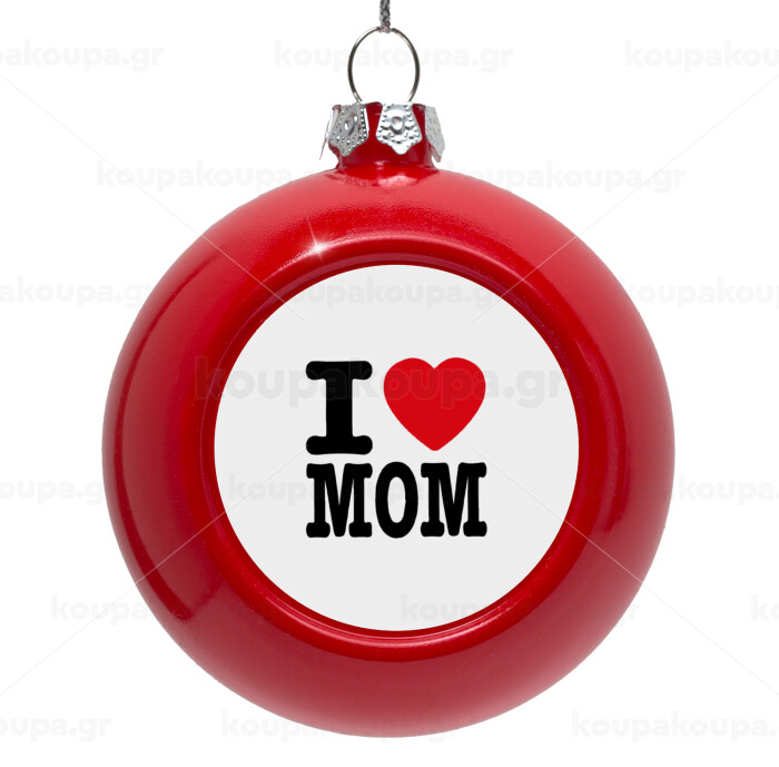 I LOVE MOM, Στολίδι Χριστουγεννιάτικη μπάλα δένδρου Κόκκινη 8cm