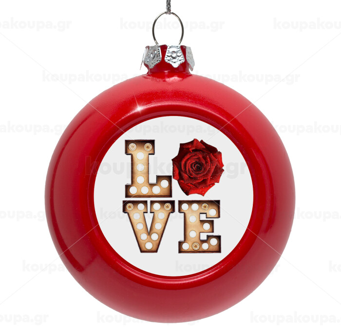 Love lights and roses, Στολίδι Χριστουγεννιάτικη μπάλα δένδρου Κόκκινη 8cm