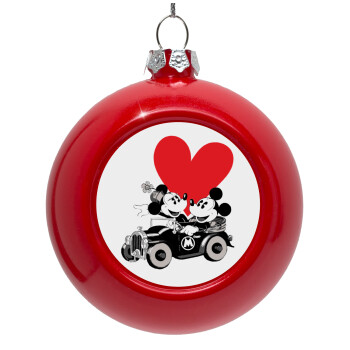 Mickey & Minnie love car, Στολίδι Χριστουγεννιάτικη μπάλα δένδρου Κόκκινη 8cm