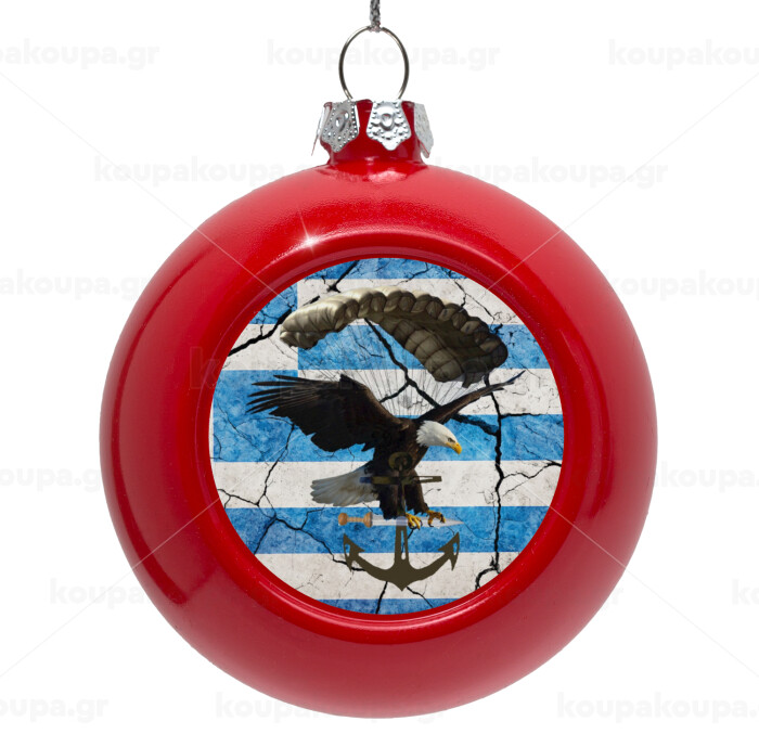 Hellas army αετός, Στολίδι Χριστουγεννιάτικη μπάλα δένδρου Κόκκινη 8cm