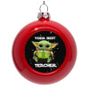 Yoda Best Teacher, Στολίδι Χριστουγεννιάτικη μπάλα δένδρου Κόκκινη 8cm