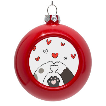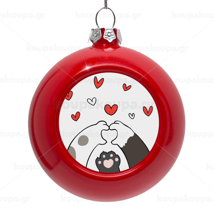 Πατούσες γάτας, Στολίδι Χριστουγεννιάτικη μπάλα δένδρου Κόκκινη 8cm