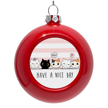 Have a nice day cats, Στολίδι Χριστουγεννιάτικη μπάλα δένδρου Κόκκινη 8cm