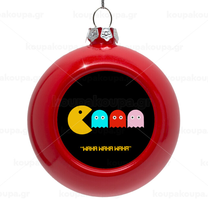 Pacman waka waka waka, Στολίδι Χριστουγεννιάτικη μπάλα δένδρου Κόκκινη 8cm