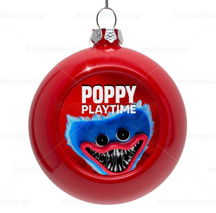 Poppy Playtime Huggy wuggy, Στολίδι Χριστουγεννιάτικη μπάλα δένδρου Κόκκινη 8cm