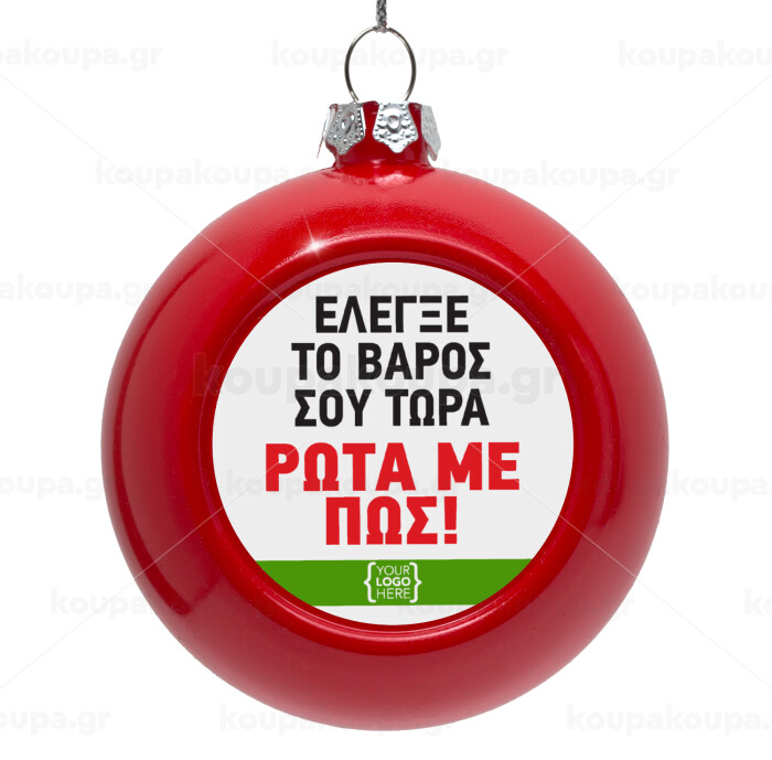 Έλεγξε το βάρος σου ρώτα με πως! {your logo here}, Στολίδι Χριστουγεννιάτικη μπάλα δένδρου Κόκκινη 8cm