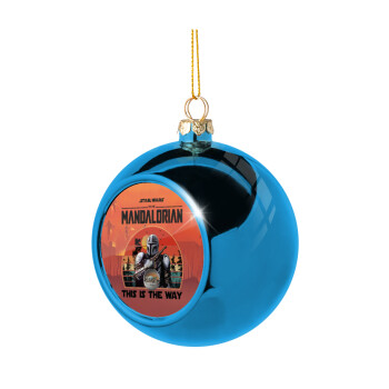 Baby Yoda mandalorian, Στολίδι Χριστουγεννιάτικη μπάλα δένδρου Μπλε 8cm
