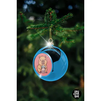 Capybara Bubble Tea, Στολίδι Χριστουγεννιάτικη μπάλα δένδρου Μπλε 8cm