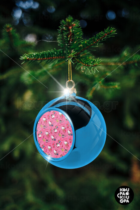 Hello kitty, Στολίδι Χριστουγεννιάτικη μπάλα δένδρου Μπλε 8cm