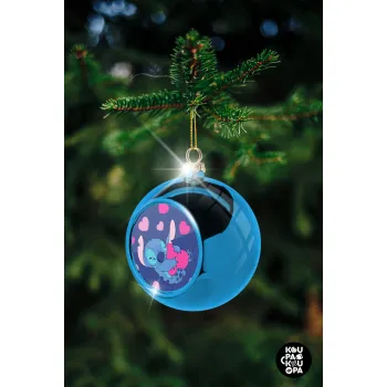 Lilo & Stitch hugs and hearts, Στολίδι Χριστουγεννιάτικη μπάλα δένδρου Μπλε 8cm