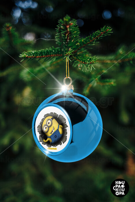 Minions hi, Στολίδι Χριστουγεννιάτικη μπάλα δένδρου Μπλε 8cm