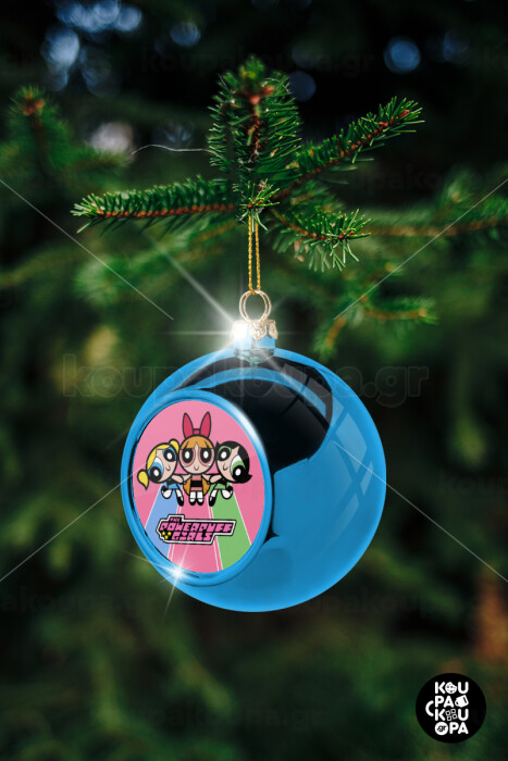 The powerpuff girls , Στολίδι Χριστουγεννιάτικη μπάλα δένδρου Μπλε 8cm