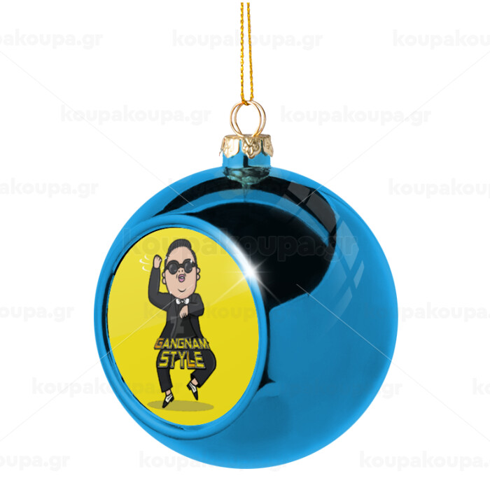 PSY - GANGNAM STYLE, Στολίδι Χριστουγεννιάτικη μπάλα δένδρου Μπλε 8cm