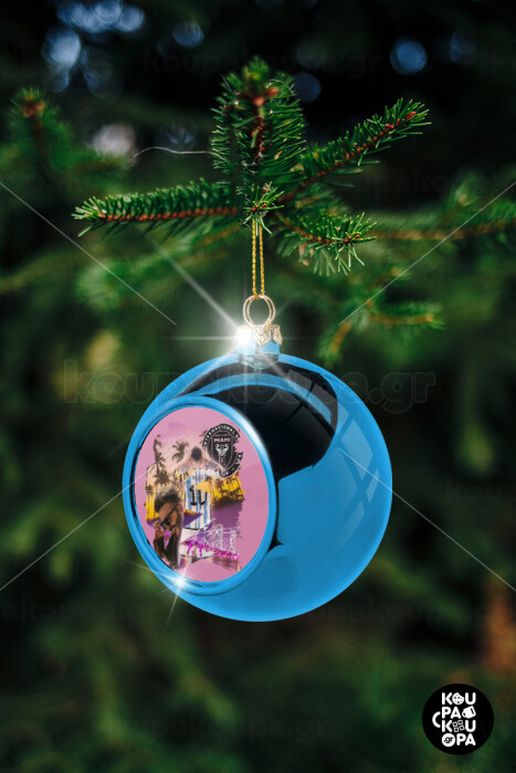 Lionel Messi Miami, Στολίδι Χριστουγεννιάτικη μπάλα δένδρου Μπλε 8cm