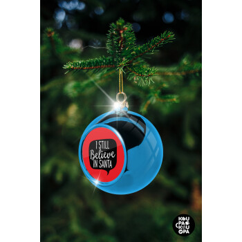 Ι still believe in santa, Στολίδι Χριστουγεννιάτικη μπάλα δένδρου Μπλε 8cm