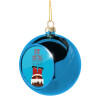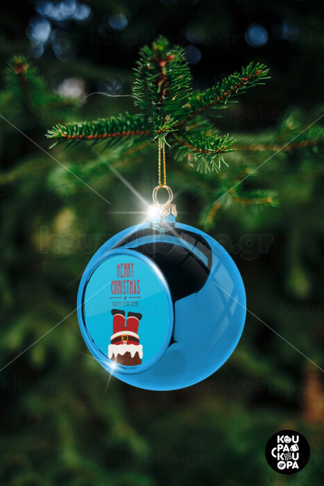 Merry christmas chimney, Στολίδι Χριστουγεννιάτικη μπάλα δένδρου Μπλε 8cm