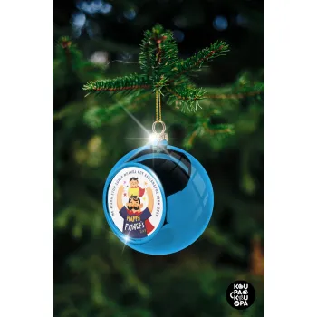 Happy Fathers Day με όνομα, Στολίδι Χριστουγεννιάτικη μπάλα δένδρου Μπλε 8cm