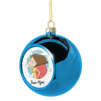 Super mom, Στολίδι Χριστουγεννιάτικη μπάλα δένδρου Μπλε 8cm