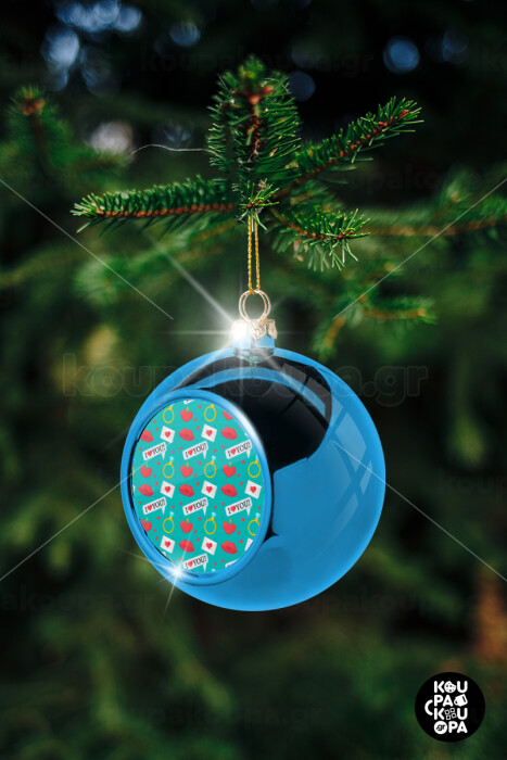 I Love You hearts rings & kiss pattern, Στολίδι Χριστουγεννιάτικη μπάλα δένδρου Μπλε 8cm